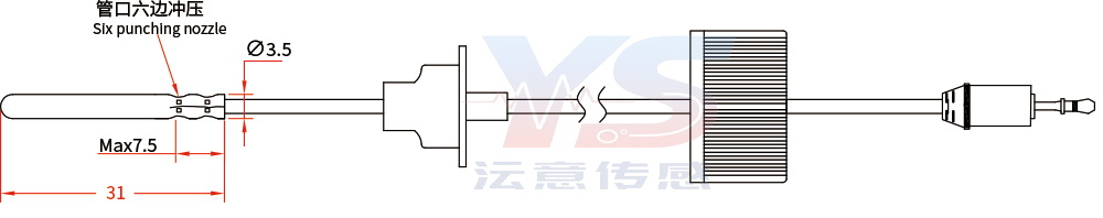 1、在金属外壳保护管中,环氧树脂封装结构。 2、冲压固定方式。 3、防水胶圈保护。