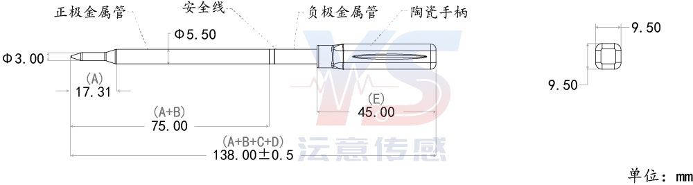 尺寸: 整机长度138mm(A+B+C+D+E) 材质: 金属304/氧化铝/氧化锆陶瓷 颜色: 黑/白 金属管直径: 5.5mm 陶瓷直径: 9.50mm(最大处) 无线技术: BLE5.1 肉温量程: -10-105℃ 肉温精度: ±0.5℃ 炉温量程: 0-285℃ 炉温精度: ±3℃ 续航时间: >36h 防水等级: ip67 通讯距离: 55m(空旷地)