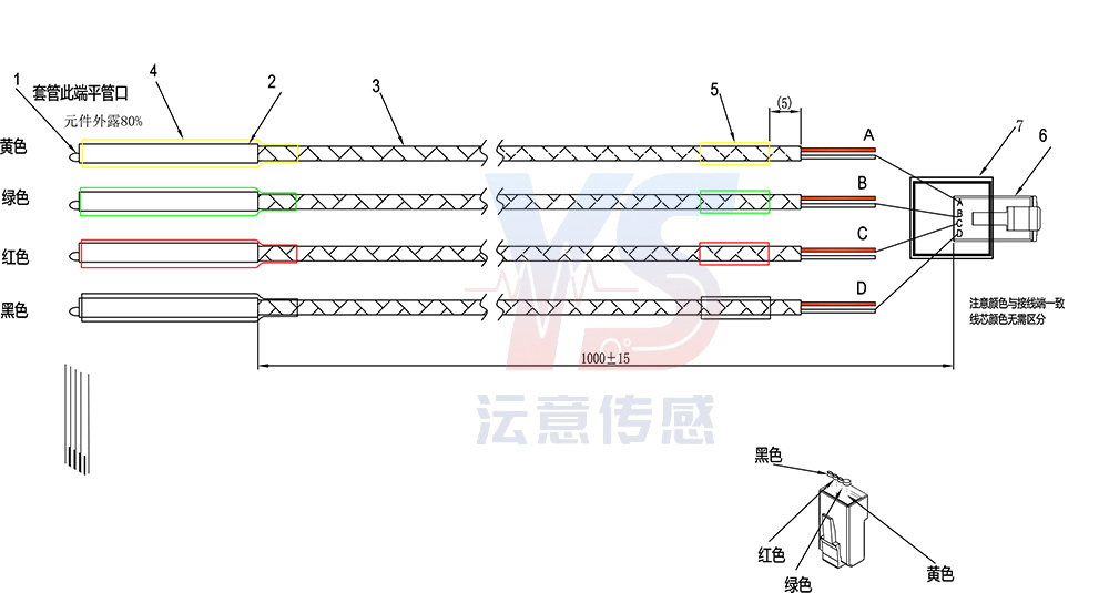 2.高温绝缘硅树脂管封装,测温稳定,安装方便;
