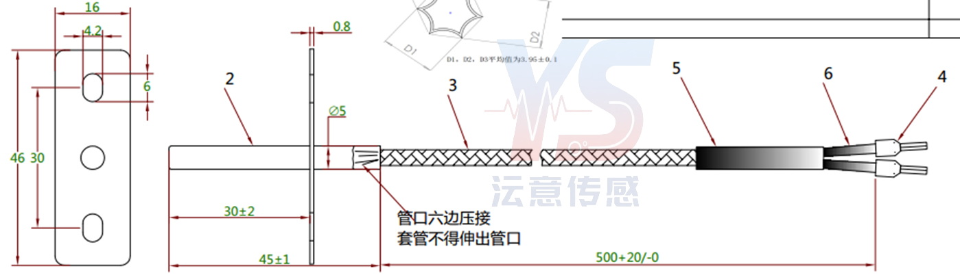 材质:SUS304不锈钢外壳/高温钢网云母线